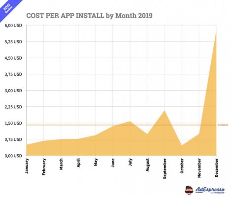 Facebook Ads kunnen uitzonderlijk effectief zijn wanneer je mobiele app installs wilt verhogen. Deze gegevens zijn beperkt tot campagnes die de doelstellingen "Mobile App Installs" gebruikten in 2019 en 2020.
